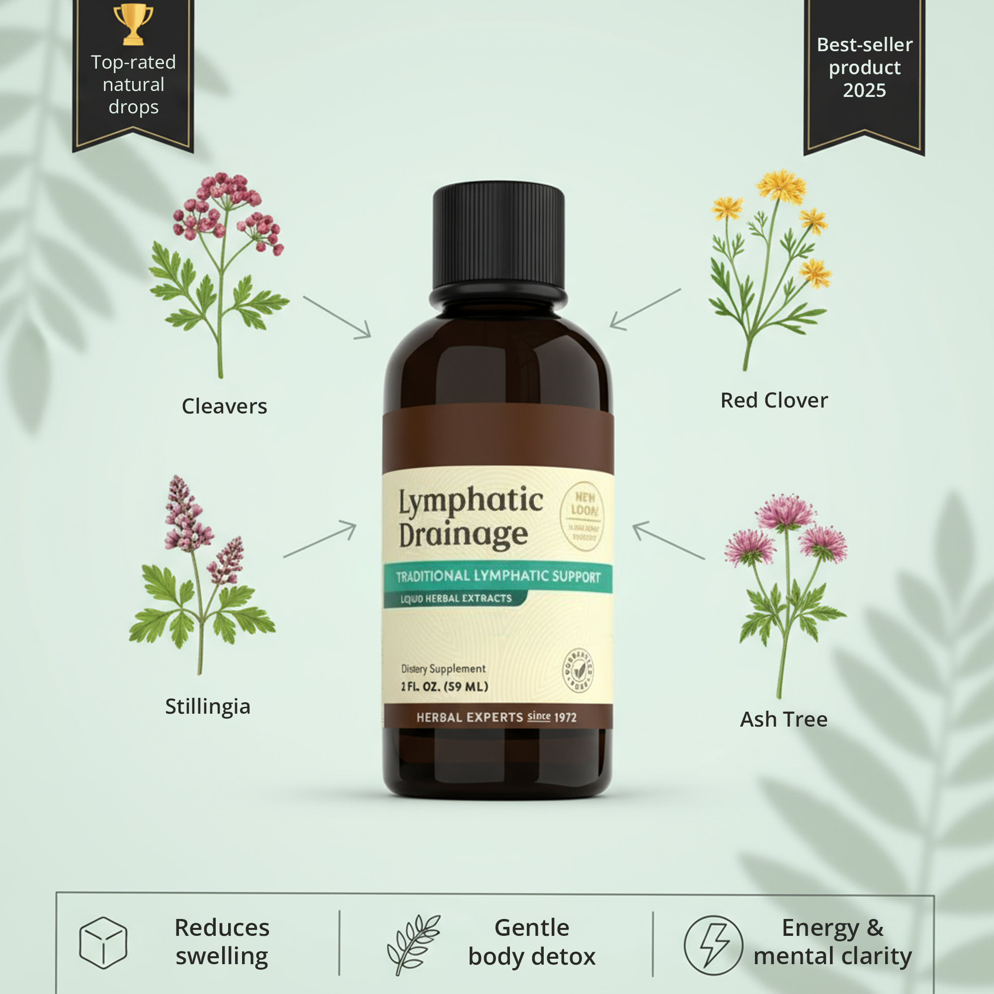 Plants like cleavers and red clover naturally support drainage and help reactivate lymph circulation for a lighter, more balanced body — from the inside out.