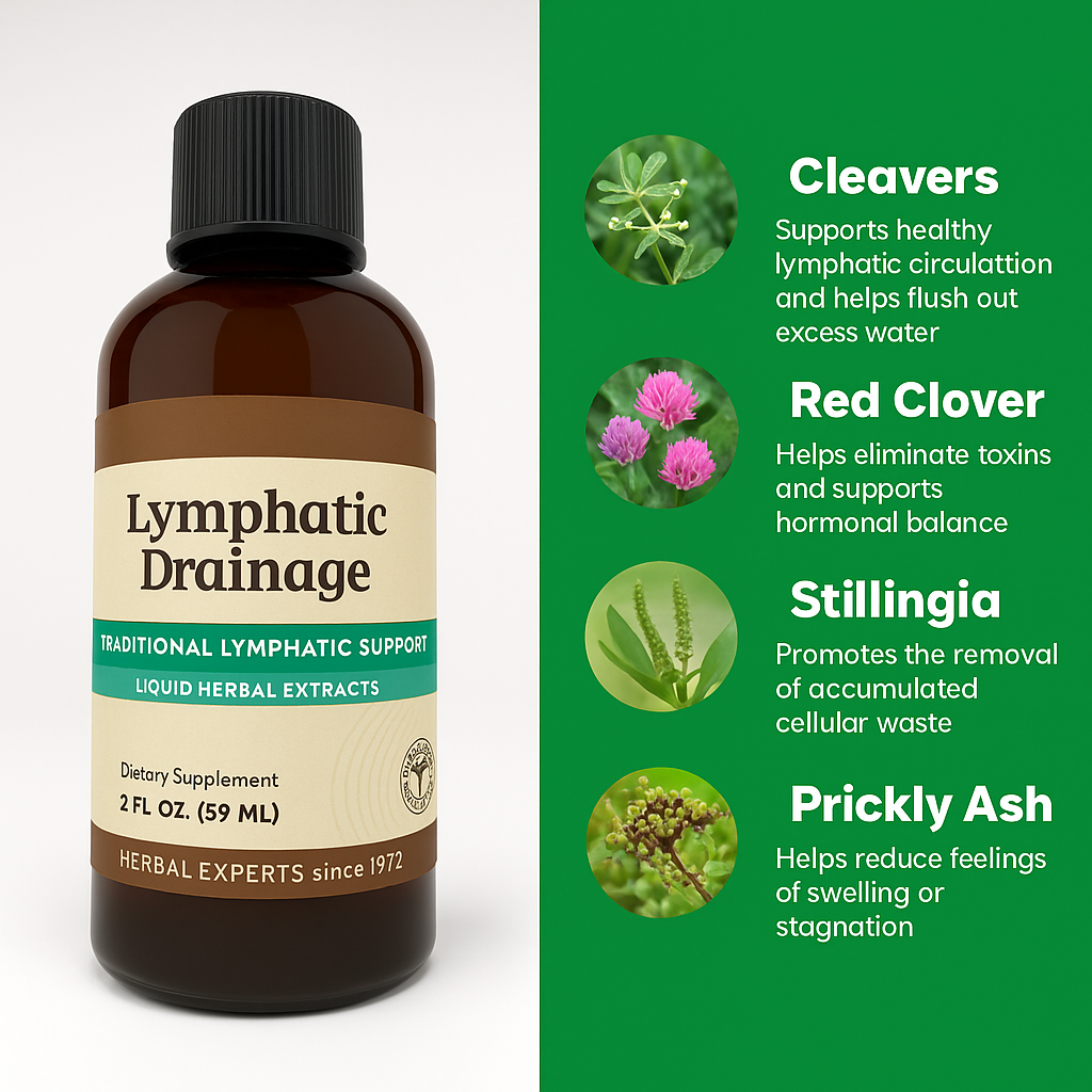 Plants like cleavers and red clover naturally support drainage and help reactivate lymph circulation for a lighter, more balanced body — from the inside out.